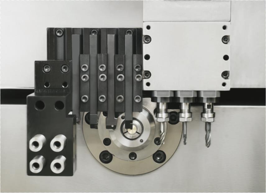 走心式數(shù)控車(chē)床,三軸均采用直線滾動(dòng)導(dǎo)軌,由絕對(duì)值伺服電機(jī)驅(qū)動(dòng),直線式排刀結(jié)構(gòu)具有快速換刀的特點(diǎn),數(shù)控系統(tǒng)功能完善,操控簡(jiǎn)易。根據(jù)零件加工需要,可選配側(cè)面動(dòng)力頭,實(shí)現(xiàn)鉆孔、銑削復(fù)合加工。配備自動(dòng)送料機(jī),可實(shí)現(xiàn)自動(dòng)化生產(chǎn)。