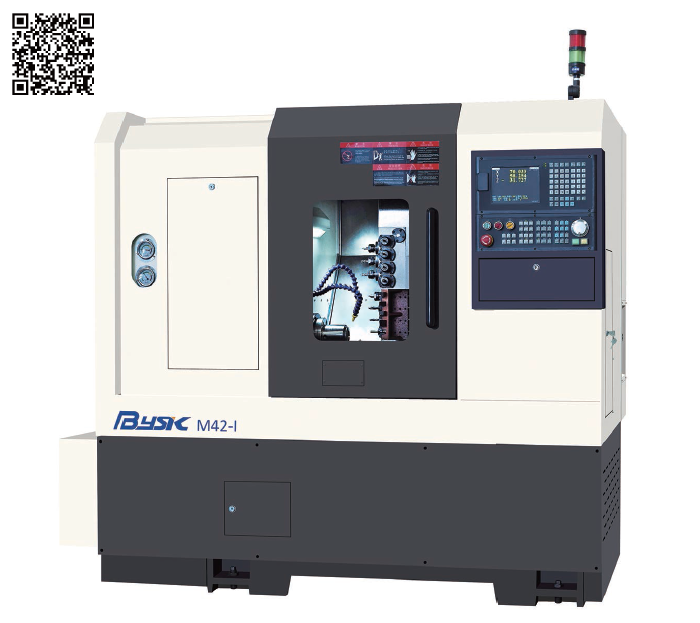 M42-I多功能車銑復(fù)合式數(shù)控車床,集成了車、銑、鉆、鏜、攻絲等功能與一臺設(shè)備上,能進(jìn)行端面和側(cè)面的銑削、鉆削、攻絲等復(fù)合加工,特別適合一些形狀復(fù)雜、精度要求高的回轉(zhuǎn)體零件的加工,可在一次裝夾中完成全部或大部分工序的加工,即可保證精度、又可提高效率、降低成本。機(jī)床設(shè)計有靈活的主軸抱緊輔助機(jī)構(gòu),提高了零件加工時的剛性。直接式換刀系統(tǒng),節(jié)省換刀程序的復(fù)雜步驟及縮短換刀空跑時間,做到了高效加工為用戶節(jié)省成本。