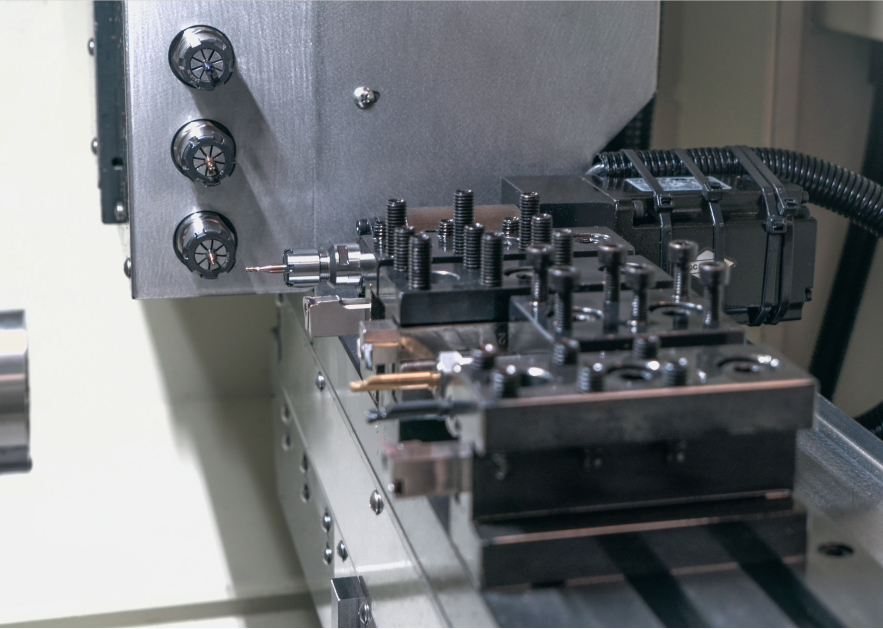 ●刀架板新增Y軸,配備3個側(cè)面動力頭